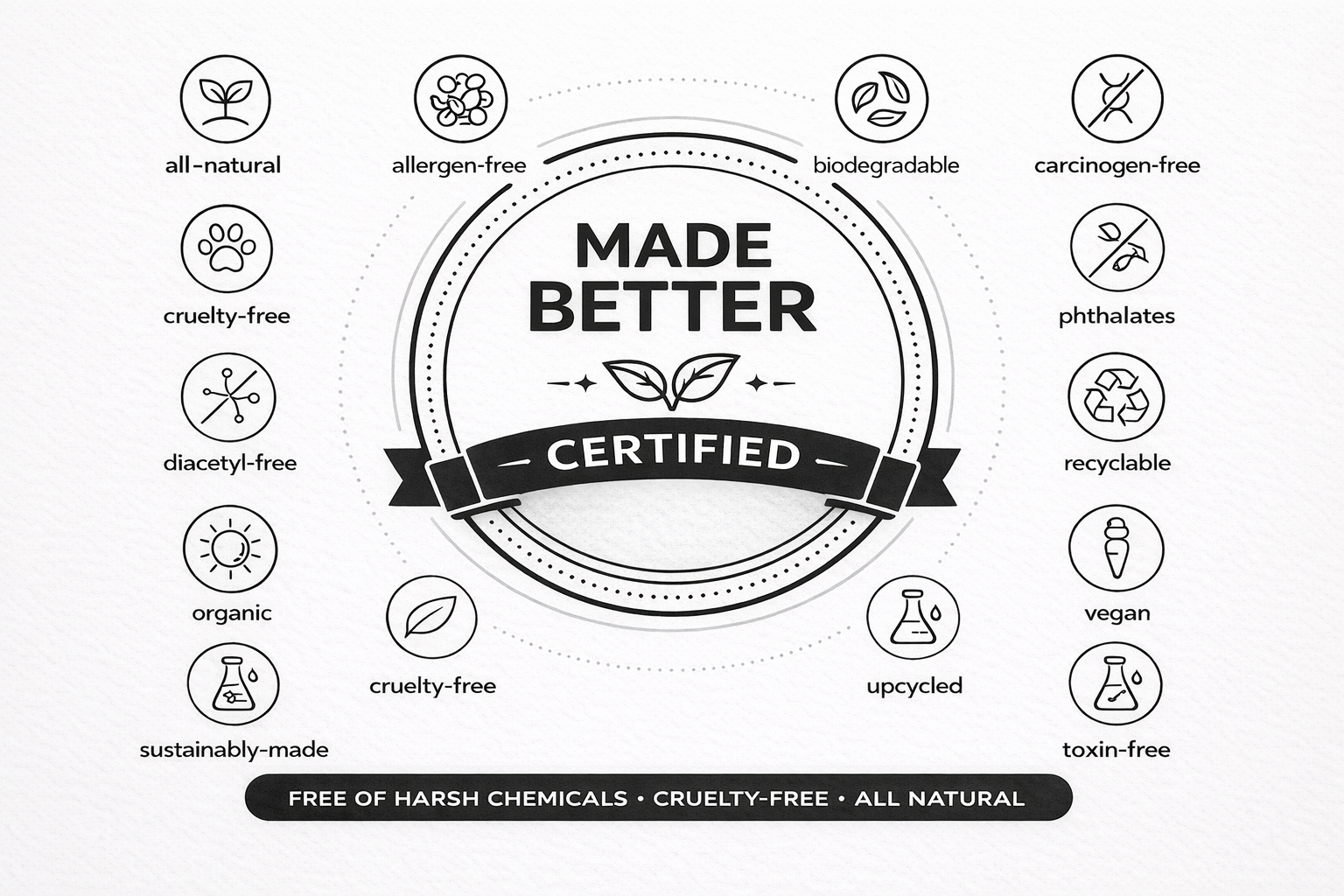 Flame Society Co. is proudly Made Better Certified, using clean, thoughtfully sourced ingredients for a guilt-free, non-toxic burn.
