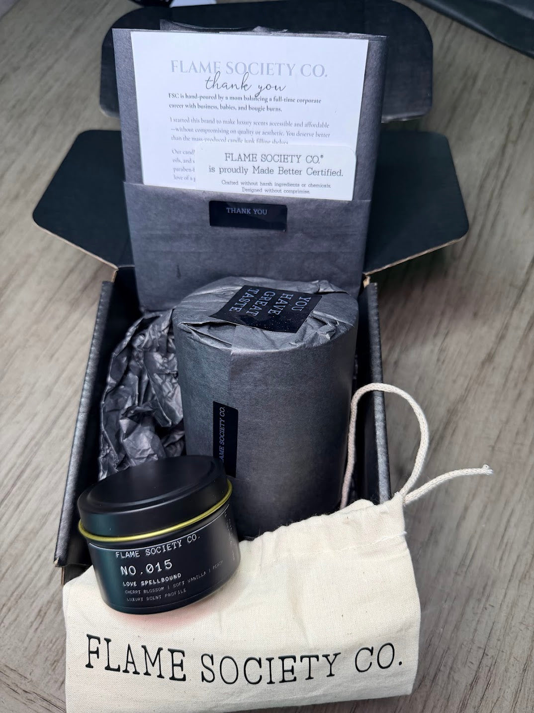 Flame Society Co. is an independent brand and is not affiliated with, endorsed by, or sponsored by any designer fragrance brand or trademark holder. Fragrance descriptions are provided solely to describe scent characteristics.